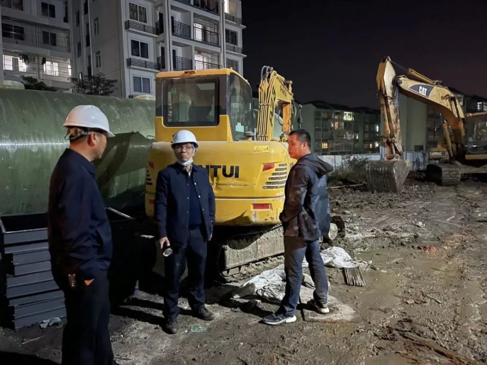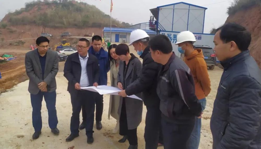 △图为郑雄斯(左二)在宁明国际健康驿站项目现场协调工作。