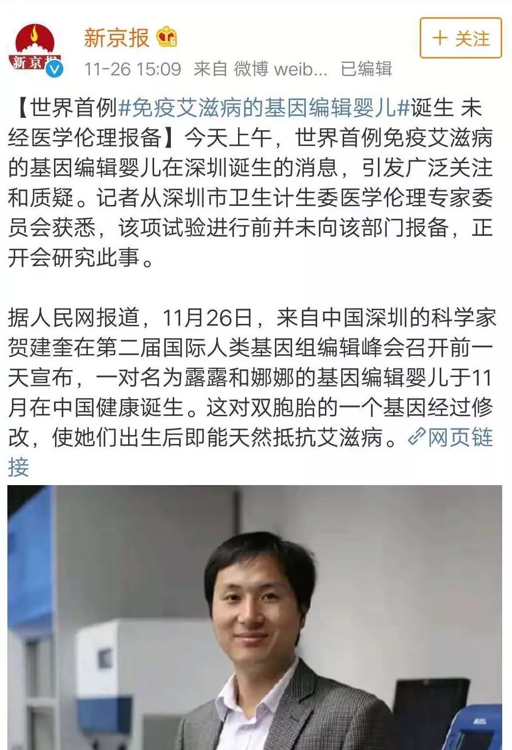 北京大学分子医学研究所研究员刘颖的是这样说的:1.基因编辑技术的脱靶效应会带来何种后果是完全未知的;2. CCR5缺失已经被实验证实会造成免疫缺陷,导致其他病毒的易感甚至肿瘤的发生。CRISPR/Cas9基因编辑技术共同发明人、诺贝尔奖热门人选、加州大学伯克利分校Jennifer Doudna教授发表声明,表示基因编辑研究必须继续,呼吁大众保持理智和冷静:It is essential that this news not detract from the many important clinical efforts to use CRISPR technology to treat and cure disease in adults and in children. Public and transparent discussion of the many uses of genome editing technology must continue, as is happening over the next three days at the Human Genome Editing Summit in Hong Kong