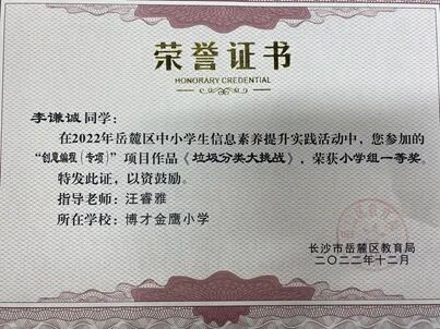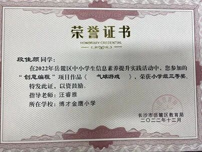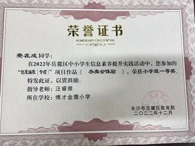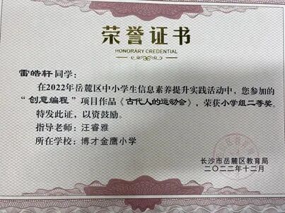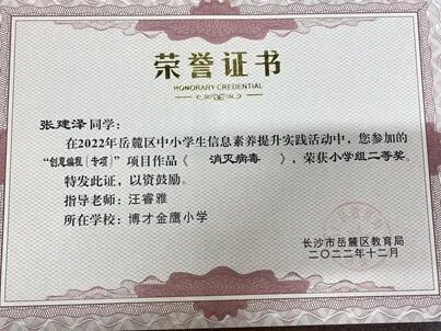 亲爱的小金鹰们,2023年湖南省中小学生信息素养大赛实践活动即将展开,现面向全校1-6年级同学征集参赛作品,如有意向报名请在阅读公众号后扫码填写报名表。优秀作品将有机会作为湘江新区乃至长沙市代表,参加湖南省信息素养大赛、湖南省创新技术与实践大赛(NOC)、长沙市青少年创客挑战赛、长沙市现场创意编程比赛等各类教育部白名单赛事,还不快快行动起来?