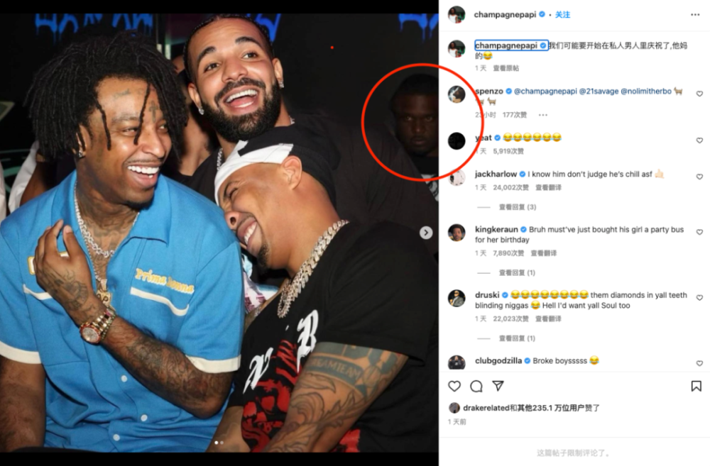 不过,drake对于自己的人身安全还是十分注意,最近就在社交媒体上表示,自己在看party上的照片时,发现有人不怀好意的看着自己,所以以后的party都将设置成私人party。