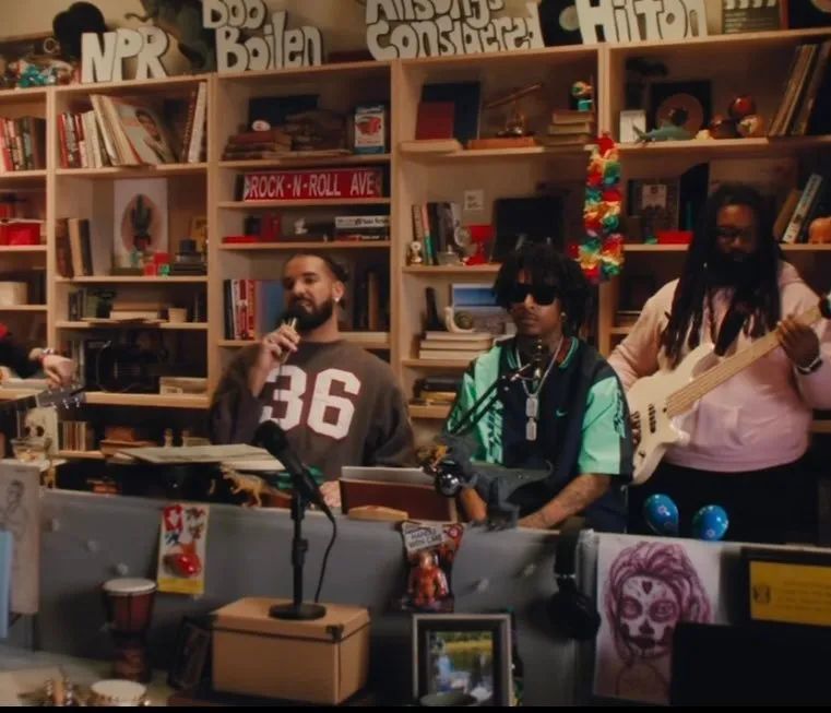 比如Drake和21 Savage发布了NPR小桌音乐会的现场预告片;两人一起登上封面的《Vogue》杂志、一个《Vogue》视频片段、以及一个《The Howard Stern Show》采访片段;由Michael B. Jordan担任开场嘉宾的SNL周六夜现场表演;甚至还有一个COLORS SHOW现场。