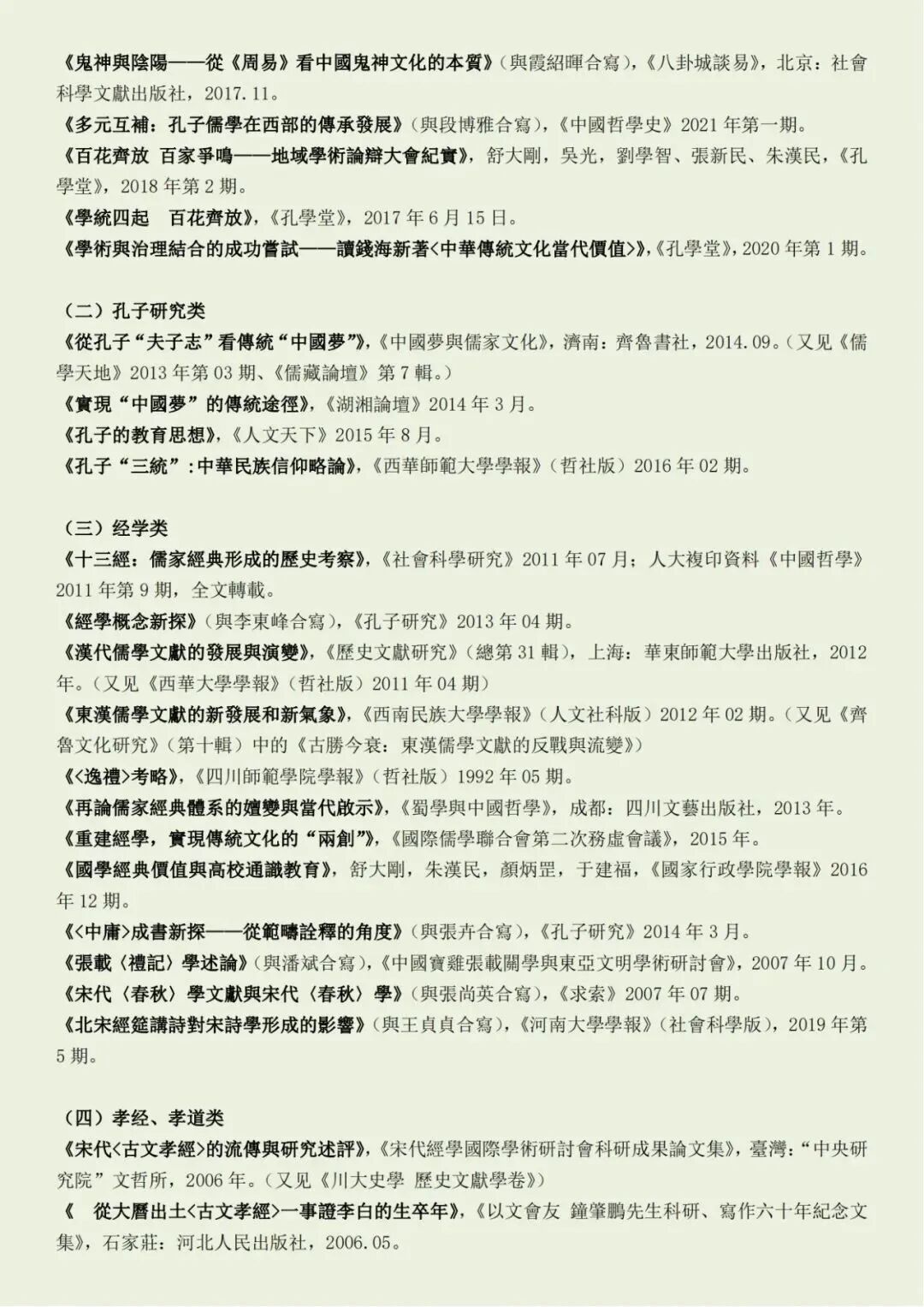 余之读书,颇似五柳先生;余之乐学,亦酷似五柳。陶渊明《五柳先生传》谓其“好读书,不求甚解;每有会意,便欣然忘食。”这里有优点,也有缺点。优点是“好读书”,所以不曾被其他荣利迷惑,始终坚持与书本为伍,以书为主,一刻也没有离开过书本。缺点是“不求甚解”,虽然编纂出版了不少书本成果,但是心得不多,收获有限。至于“每有会意,便欣然忘食”,则时常得意忘形,不知老之将至。 我平身一大爱好,就是读书、教书、编书,不断发现问题、探索问题;其缺点也是太爱发现新问题,容易转移新阵地,一事未了,便又转入新领域,平生没有固守不变的阵地。 想当初,还在大学时代,对枯燥的考据不感兴趣,而喜欢文学性的表达和描述,沉潜于《史记》《汉书》《资治通鉴》等原著或选本中,对庄子书、老泉论、东坡文,颇为欣赏;对《诗经》《古诗十九首》《唐诗选》《聊斋志异》等,也很喜欢。看了几篇沫若历史剧、鲁迅历史小说,又想写历史题材的作品,借古讽今,当时写过《子产不毁乡校》,在历史系板报上发表;写过怀念故乡风物的《山茶花》,在家乡《秀山文艺》发表。 还向《诗刊》《新星》《四川文艺》等投过稿,多是泥牛入海无消息。又曾邀约本班同学李枫、中文系老乡陈志武等注释《历代爱情诗》,向重庆出版社投过稿,并被约谈过修改之事,也未坚持下去,终未出版,手稿至今还压在箱箧底层。还研究过中国科举制的学位性质,收集了不少资料,但只发表过两篇习作,便又放下不搞了。 留校当教师后,曾经配合一些老师做过收集资料、古籍整理等科研,但由于当时没有指派固定的指导老师,系上全让我们自由摸索,任情发挥。我曾经协助李耀仙先生做教育厅课题《廖平学术论著选》,从南充到成都复印了一大堆资料,当时省社院谢幼田先生鼓励我做经学,还吸纳我在他主持的《社会科学研究》“廖平经学研究”专栏中发过一篇习作,本以为这就会将精力集中到经学史研究上来。但回校后为教学需要,又编起了《工具书与历史文献检索》和《史部目录学》等讲义;还参加过时任兰州大学教授的张大可先生主编的《中国历史文献学》写作,原定经学研究又暂时停摆了。 在四川大学参加杨明照先生主办的“古籍事理研修班”时,与蒋宗许等校注《斜川集》,曾由巴蜀书社出版(后经过修订在中华书局出版《苏过诗文编年笺注》四册)。至四川大学工作后,还出版过《三苏后代研究》(巴蜀书社),申报过四川省课题《三苏学案》;又曾与曾枣庄先生合编《三苏全书》(20册,语文出版社出版)。如果进行“三苏”的研究与未尝不可,但又因担任古籍工作,需要为大家考虑而未坚持。 上博士研究生时,参加过吕绍纲《周易辞典》、廖名春《周易大词典》不少辞条的写作,还编有三四万字的《易学年表》;与同寝室的张希峰写过《周易新注新译》,长春出版社曾准备出版,排出清样后让我们修改,未能改定,一直只以内部讲义形式流通于师友之间。 我的博士学位论文《春秋时期少数民族分布和迁徙研究》,本来是配合金老的教育部课题《春秋史》而选,在写作时还广泛收集材料编成《周秦民族系年考辨》书稿(已经打印成100余万言清样)。毕业后,除了在台湾文津出版出版过毕业论文《春秋民族的分布与迁徙》外,由于工作后科研任务向宋代和儒学转变,又将《春秋史》和《系年考辨》付诸悬置了。 担任古籍所副所长后,先是协助曾枣庄、刘琳先生做《全宋文》排版出版等善后工作。又参加过由任继愈、程千帆两委托曾枣庄先生主编的《中华大典》“文学典宋辽金元文学分典”的编纂,与同事完成其中《元文学部》200余万字,随全书由江苏古籍出版社出版,课题组也为《中华大典》的顺利推进献了头功。 接着带领全所同仁,利用《全宋文》的版本资料,筹集社会资金,出版了108册《宋集珍本丛刊》;并与哈佛大学燕京学社、台湾“中央研究院”合作,组织校点《宋会要辑稿》,用于台湾“中央研究院”汉籍数据库建设(后来刘琳、刁忠民等先生在这此基础上审定,由上海古籍出版社出版纸质本,并获教育部优秀成果一等奖)。 这中间,还为了纪念恩师金景芳先生,编过《金景芳学案》三册(线装书局出版)、《金景芳全集》10册(上海古籍出版社出版)等,以酬师恩。还与人合作主编过《中国风雅丛书》《战国风云丛书》,在台湾出版过“诸子百家智慧丛书”。 为了凝聚全所力量,打造标志性成果,增补学术空白,我们于1997年启动了《儒藏》编纂。为积累经验,我们首先启动《宋集珍本丛刊》(108册,任继愈先生题签、于友先赐序,线装书局出版)和《中华诸子宝藏》(40册、李学勤、缪文远两先生赐序,四川人民出版社出版)两个中型项目,结果证明是成功的,这为我们全面实施《儒藏》编纂工程增强了信心。 为编好《儒藏》,我们还分别进行了儒学文献和儒学流派的研究,申请到教育部重点研究基地——山东大学易学与中国古代哲学研究中心的重大项目——“儒家文献学研究”,以及国际儒学联合会特别项目“历代学案整理与补编”两个课题,取得了《儒学文献通论》(3册,245万字,福建人民出版社,国家出版基金资助)、《中国儒学通案》(10种、40册,人民出版社陆续出版,国家古籍整理出版基金资助)等成果;还申请了国家出版基金项目《中国孝经学史》,完成同题成果,获国家出版基金资助,由福建人民