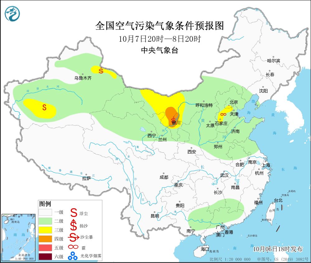 7-8日,受冷空气大风影响,内蒙古西部、宁夏中北部等地有扬沙或浮尘天气。此外,新疆南疆盆地多浮尘天气。