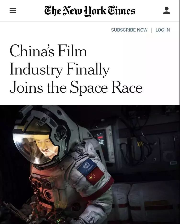 《纽约时报》称,中国在太空探索领域是后来者(a latecomer),在电影业中,中国也是科幻片领域的后来者。