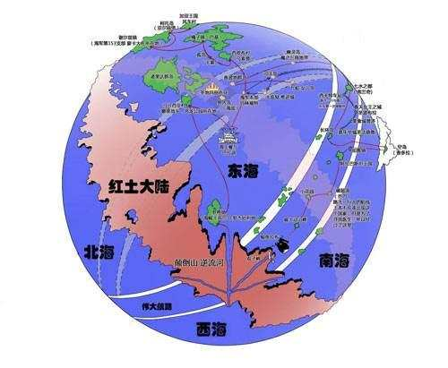 东海,南海,西海,北海,伟大航线(乐园 和 新世界)和其他;