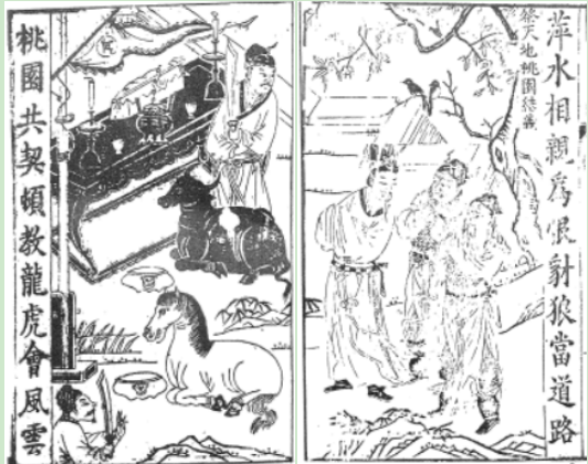 《新刊校正古本大字音释三国志通俗演义》卷一第一节双面合页连式插图