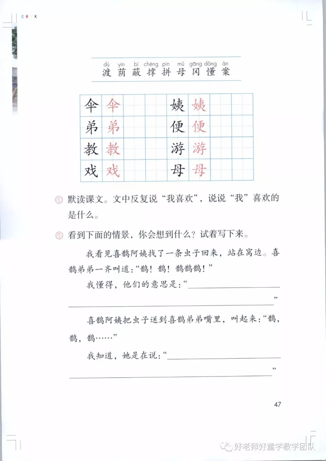 2、重视识字教学,要教给学生识字方法。重视形近字、同音字的比较,加强边读边写,试默自查;重视在口头语言和书面语言的运用中掌握所学的生字。