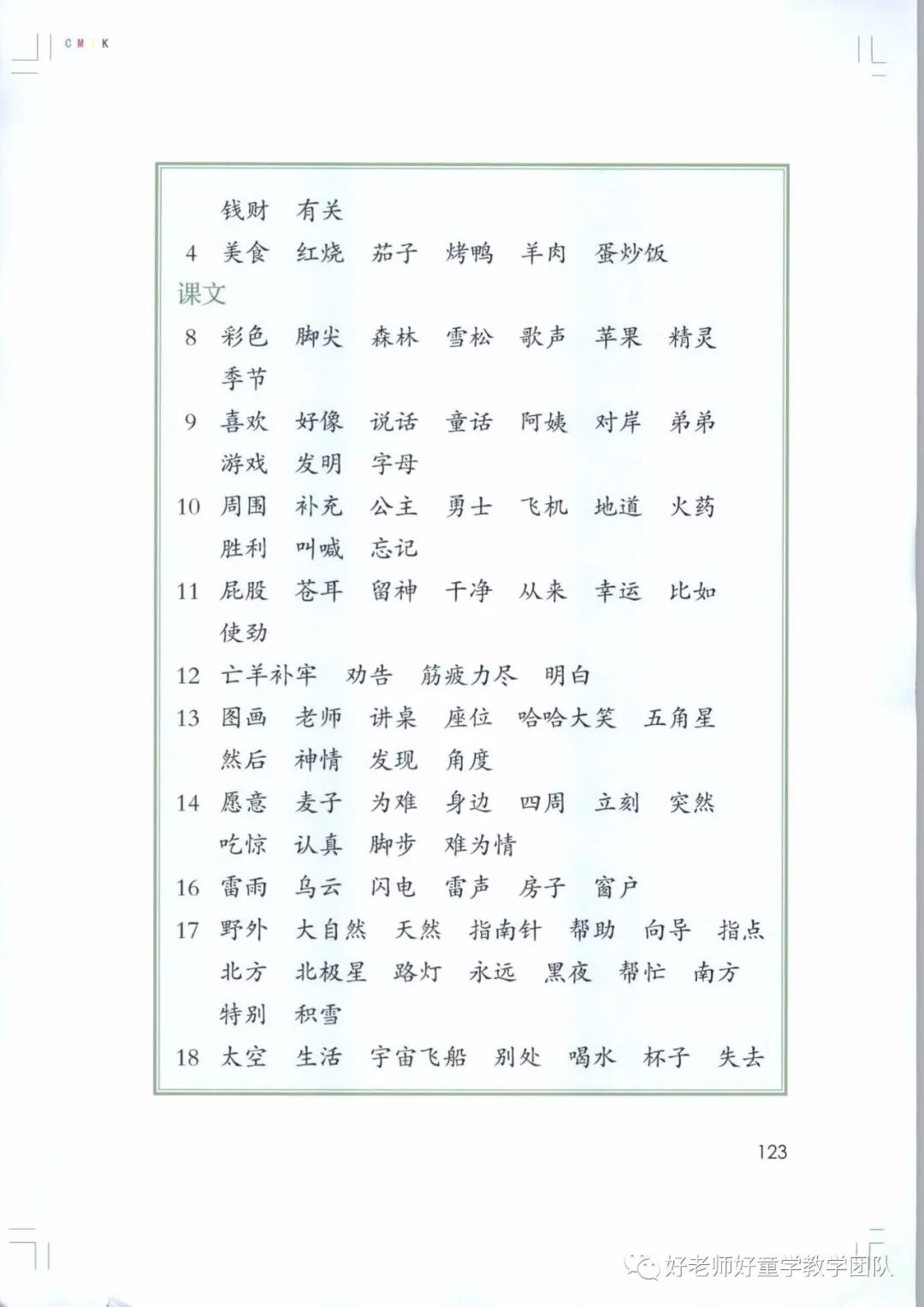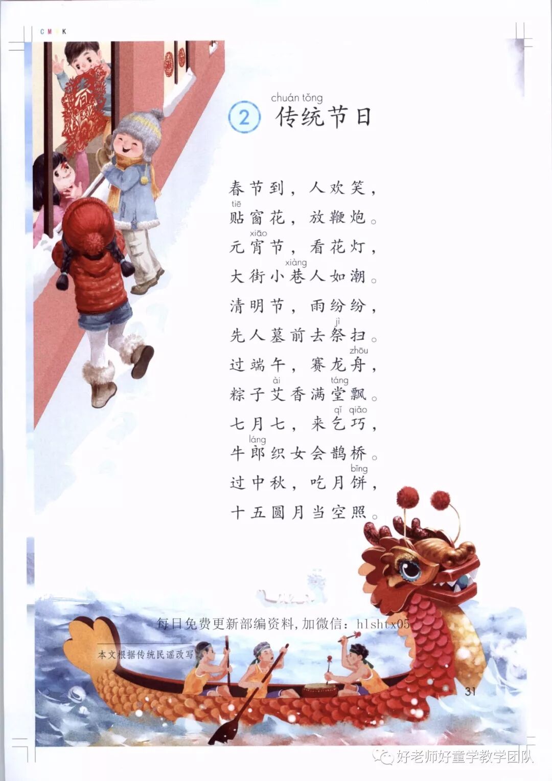 新部编本教材新选入14篇课文,其中新选识字4篇:《千人糕》《一匹出色的马》《识字神州谣》《识字传统节日》《识字贝的故事》《识字中国美食》《枫树上的喜鹊》《我是一只小虫子》《泪水茶》《蛛蛛开店》《青蛙卖泥塘》《祖先的摇篮》《当世界年纪还小的时候》《羿射九日》等。口语交际增加了《注意说话的语气》《推荐一部动画片》等内容。
