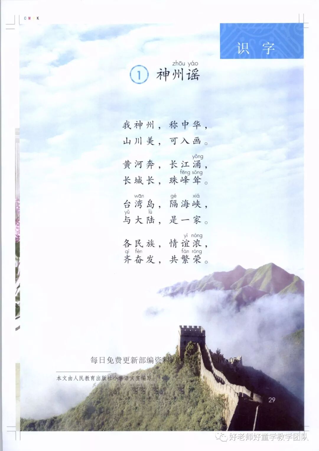 识字1~4课为“传统文化篇”,意在宏扬中华民族传统文化;第 8~11课为“童话篇”,意在培养学生热爱生活的情感;第 12~14课为“道理篇”意在培养学生遇到问题要开动脑筋思考解决问题的办法;第15~18课为“自然科技篇”,意在21~24课为“人物篇”意在让学生学习优秀品质,感悟做人的道理;让学生关注科学,从而爱科学,学科学;第19~22课为“故事篇”意在让学生学习优秀品质,感悟其中的道理;第23~25课为“历史篇”意在让学生了解历史故事,感悟祖先创造文明的道理。