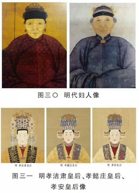 三、从女衫形制的变化看明代服饰风尚的变迁 中国传统的服饰理念,始终贯穿着儒家的伦理准则。如衣服的长短之式,男女截然不同。女服上衣齐腰,下裳接衣,是代表“地承天”;男服上衣覆裳,是表示“天包地”。