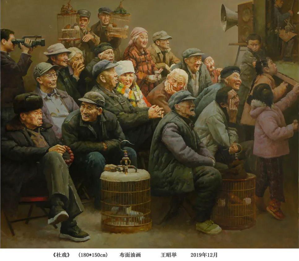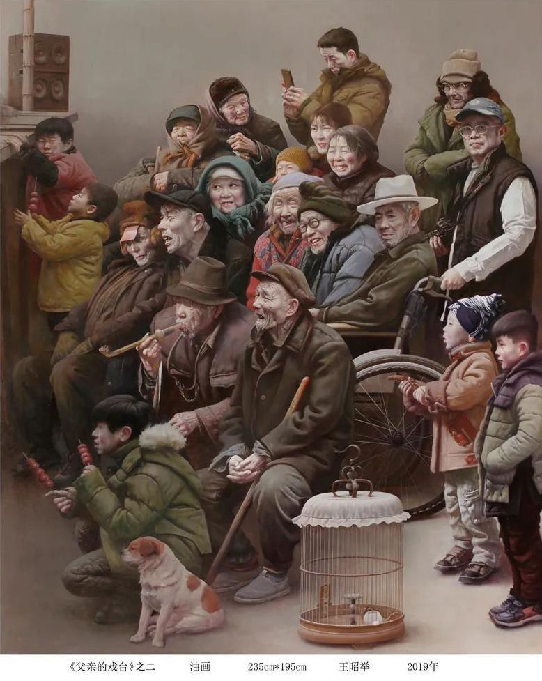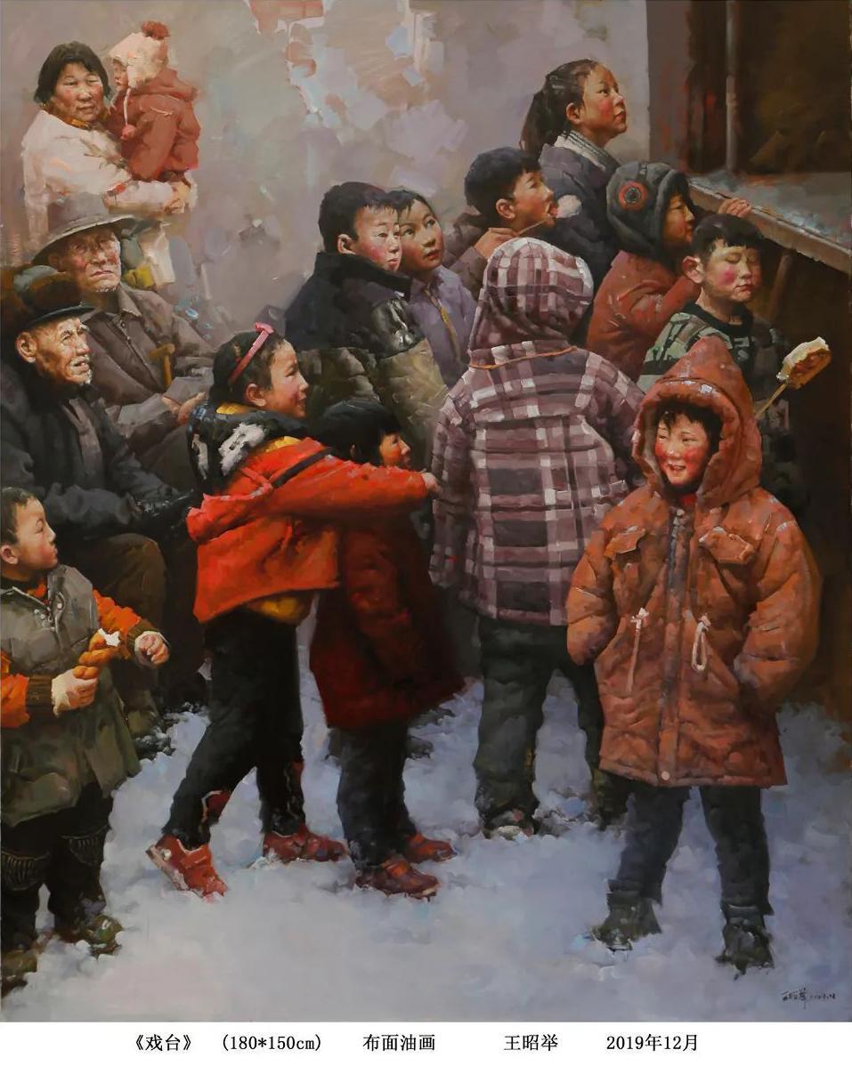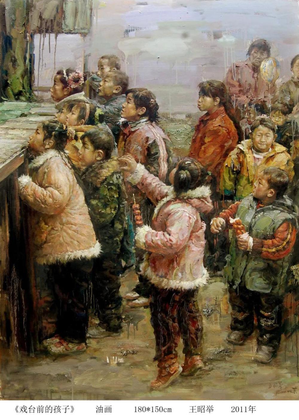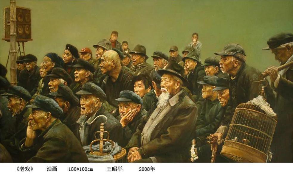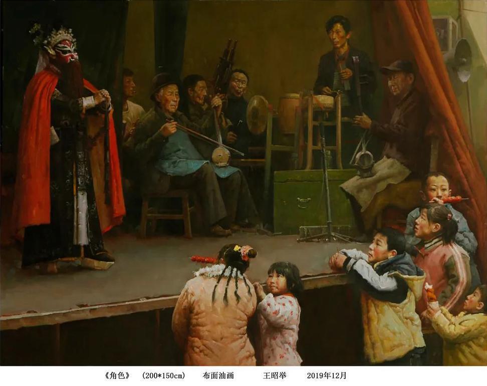 戏台是一个载体。台上台下,各有角色。台上唱的是戏,台下演绎的是人生。每一个不曾摆设的动作,每一个自然流露的面孔,都是一首朴素的诗,一曲平淡的歌。也许世界上最强大的精神力量就是自然的真实,当那些平淡无奇的元素通过构图、色彩、笔触、情绪展现在画布上的时候,于是便有了昂扬的艺术生命力。