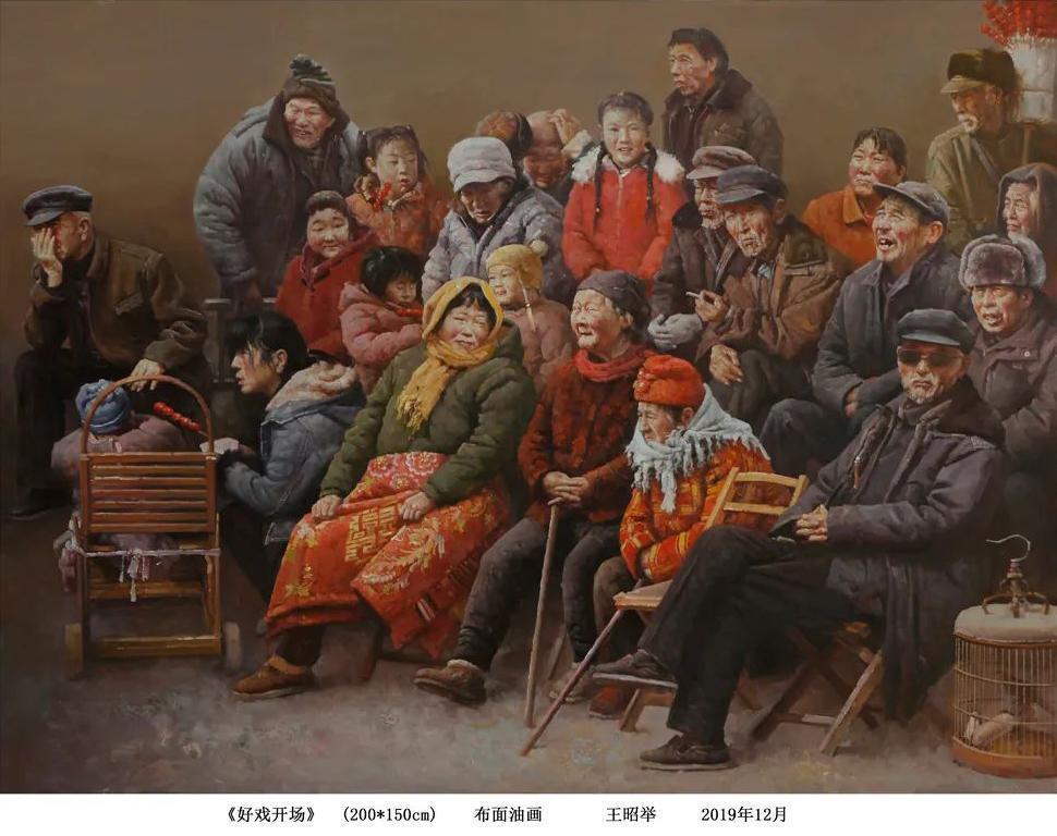 乡村戏曲是中国传统文化的一个典型构架,厚重的乡土,朴实的情感,让中国戏曲这一传统国粹在广大的乡村扎根并枝繁叶茂,乃至蔚为大观。如今,农村戏剧文化早已显现式微之象,然千百年来,延续下来的习俗依旧深深的扎根于斯。最让我感动的是那些质朴乡亲陶醉于戏台前的那份执着,那是最深沉的文化力量,我在创作这类作品时,重点对人物精神面貌的表达,舞台上的戏是虚,戏台下的面孔是实,通过纯朴的形象表现戏剧文化的悠久传承和艺术感染力。