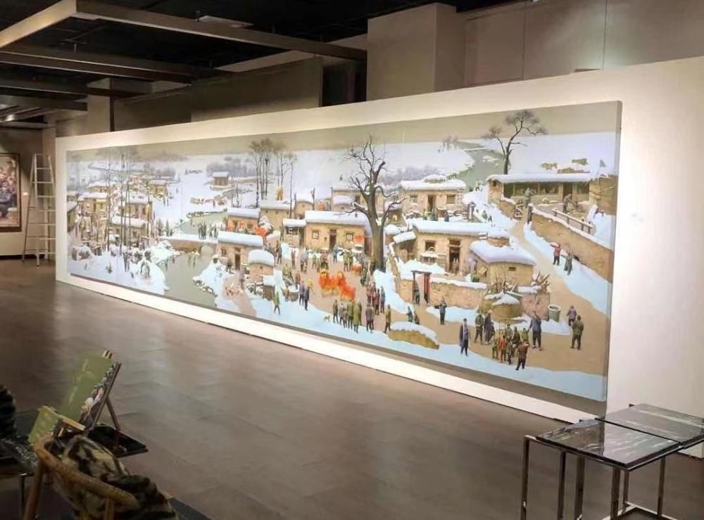 创作十米巨幅油画《回不去的故乡》,对于我来说,注定是一席不堪回首的精神大餐。尽管盛意满满,一旦着手,才陡然发现,这个题目是那样的沉重,那样的浑厚,也那样的虚无缥缈。打开童年那扇记忆的窗口,情怀依然激荡而热切。当你将要把那些疏离的印象,转化成表现的绘画元素,才明白一切又是如此的隔膜而棘手。