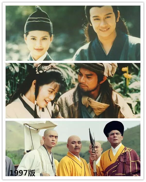 97版,黄日华演绎乔峰(独一无二的乔峰),陈浩民饰演段誉(形似汤镇业),樊少皇饰演虚竹(憨态里冒出一股秀逗的感觉,与他的大眼睛有关系),李若彤饰演王语嫣(飘飘仙儿的感觉很强烈)。这一版的重心在乔峰,华哥就是华哥。