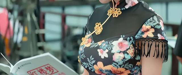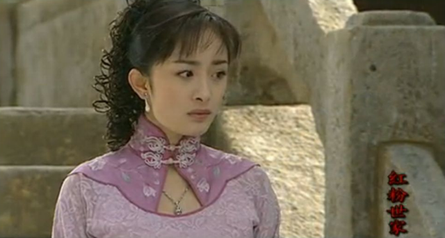 《红粉世家》里的旗袍装,虽然面容青涩,但胸前的设计尽显性感韵味。