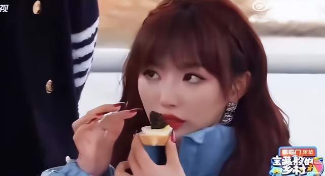 一档综艺中,需要品尝鱼子酱,嘉宾除了孔雪儿一个人,其他全都是男的。