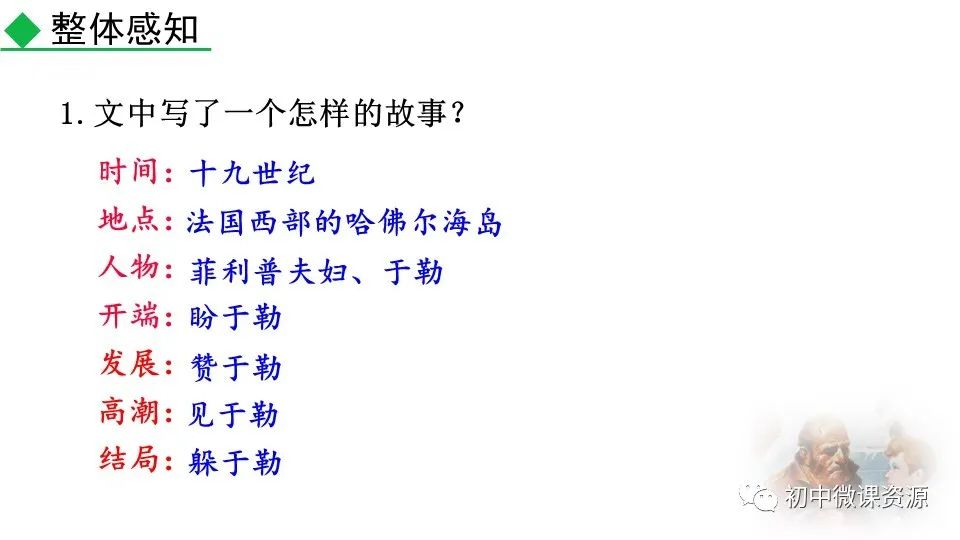 2.了解莫泊桑及其小说创作,学习运用对比手法刻画人物形象的方法。(难点)