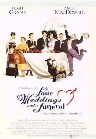 6. Four Weddings And A Funeral (1994)四个婚礼和一个葬礼For the wedding where… you hope you run into that ~someone~ with whom you keep crossing paths.老是在婚礼上遇见同一个人,这是不是就是所谓的缘分?剧情:查尔斯虽是婚礼上的常客,却对结婚怀有莫名疑惧。某次婚礼上他对一个姑娘一见倾心,与她共度了美好的一夜。而后姑娘不辞而别,直到在下次婚礼上又遇到了她……经典台词:He was my North, my South, my East, my West. My wooking week and my Sunday rest. My noon, my midnight, my talk, my song. I though love would last forever. 他曾是我的东,我的西,我的南,我的北,我的工作日,我的礼拜天,我的正午,我的深夜,我的言语,我的歌声。我以为爱可以不朽。