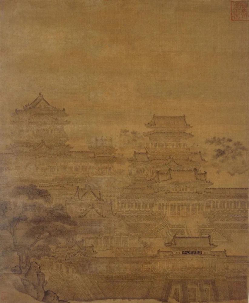 这幅《广寒宫图轴》画风近于元代王振鹏,建筑结构严整,尺寸层叠合乎法度,为元代界画中的佳构。