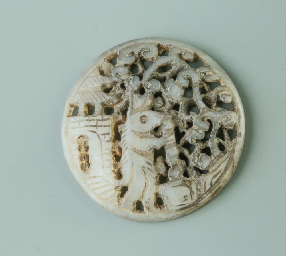 明 月兔捣药纹玉饰件(宁波博物馆藏)