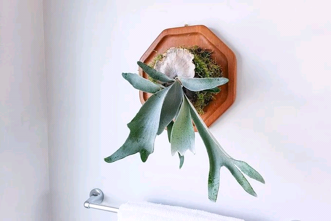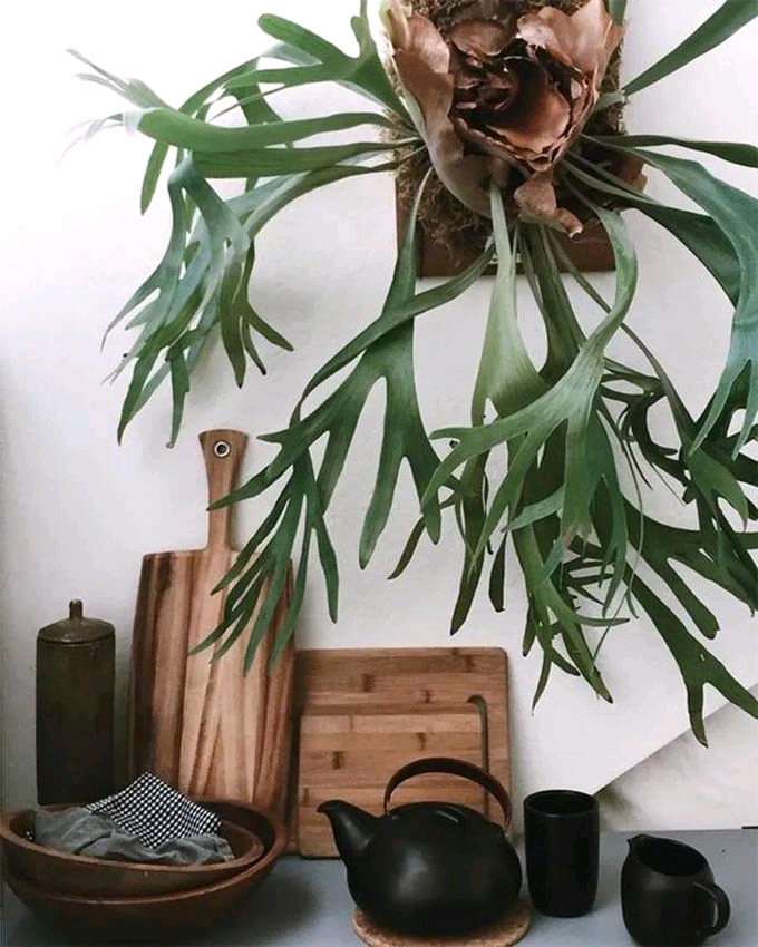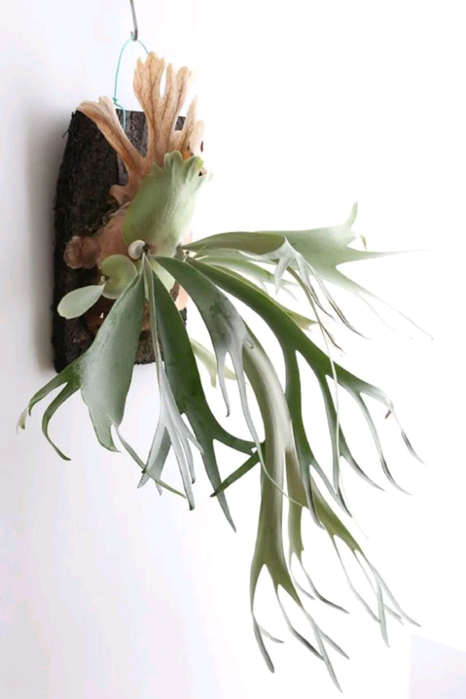 鹿角蕨多种植在蛇木板上,并挂在墙上成为装饰品,且立体造型既有特色又充满气势,让人不禁会多看几眼,很适合乡村风、美式风、现代简约风格家居使用它。