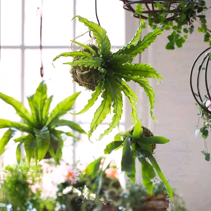 通常生长在树阴下的鸟巢蕨,喜爱半阴、潮湿环境,因此有窗户的卫生间是不错的放置地点。
