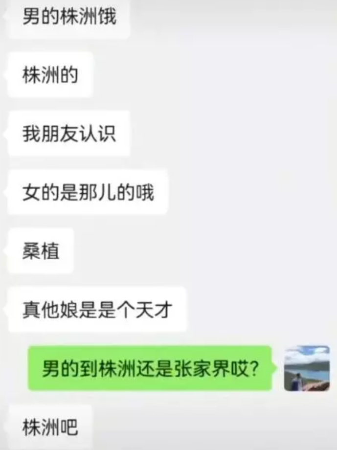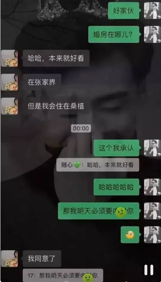 从网上曝光的聊天记录来看,男生在和一位张家界的准新娘撩骚,
