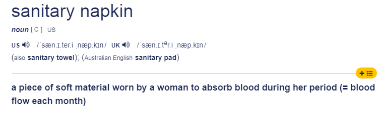 只不过区别于各国的习惯,例如小美习惯用“sanitary napkin”,小英习惯用“sanitary towel”,而小澳则习惯用“sanitary pad”。