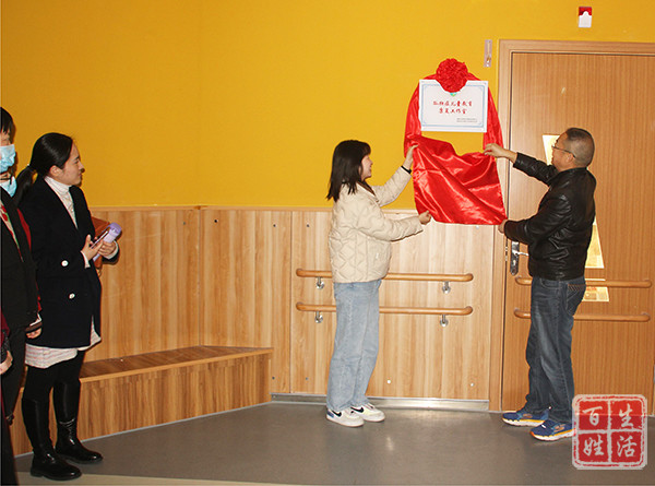 最后,与会领导与工作室成员移步至孤独症儿童教育康复工作室参加揭牌仪式。在与会人员的见证下,付勇校长与徐微老师共同为工作室揭牌并合影留念。