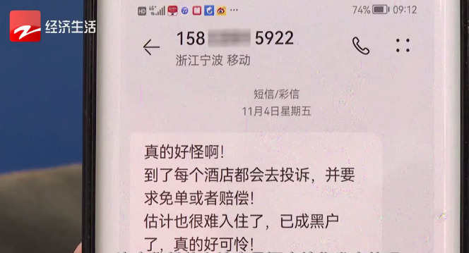 这个酒店总经理给我打完电话,第二天我就收到了威胁短信,就是骂我和我全家,是宁波的一个移动号码。(记者:您凭什么认为是酒店给您发来的呢?)因为我最近入住酒店只有投诉过他们家,况且宁波的酒店我很少去住,我认为就是这家酒店。那我的信息怎么泄漏的,他们的后台不是说一般人能看得到的,我就感觉在锦江就没有顾客的隐私而言,只要顾客投诉过,酒店方就可以把顾客的信息泄露出去。