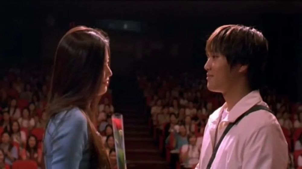 电影《我的野蛮女友》中,男女主在相识 100 天的时候,女主在舞台上演奏钢琴曲《卡农》,男主上台送给她一支玫瑰。
