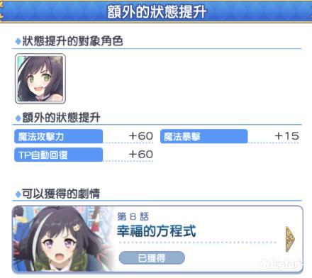 ※必看科普备注 如果这个角色是限定角色并且有另一位对应的普通角色,两位角色的羁绊属性是会一起叠加的(已经亲测)