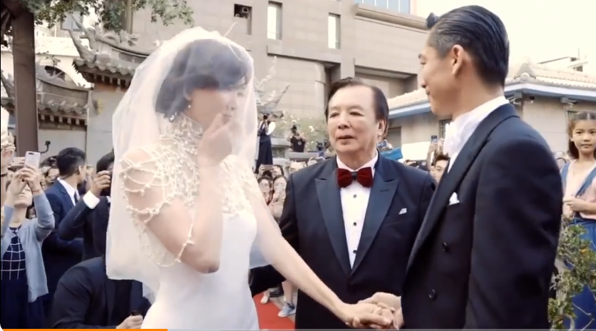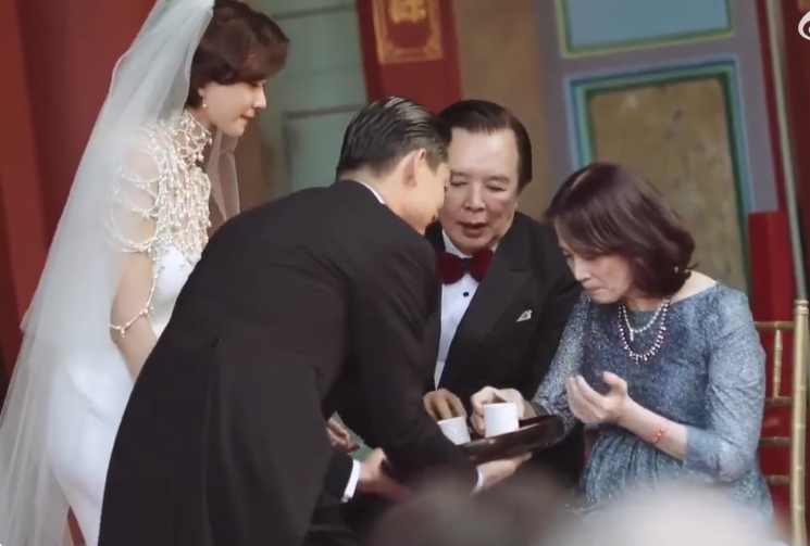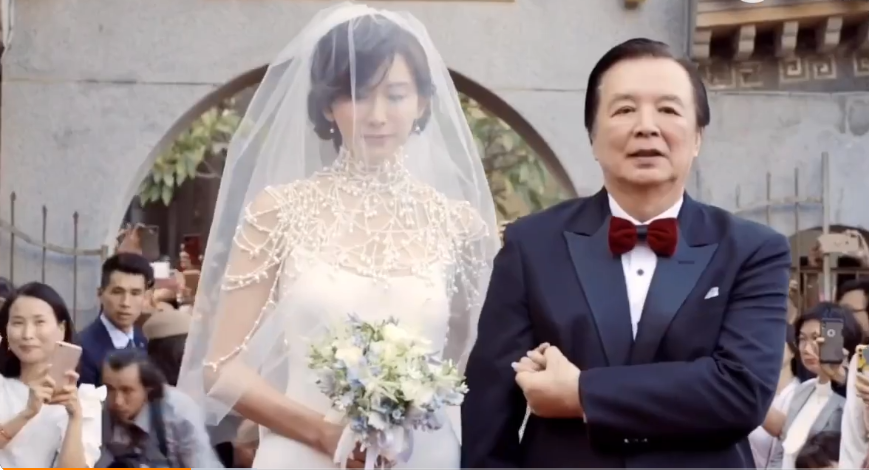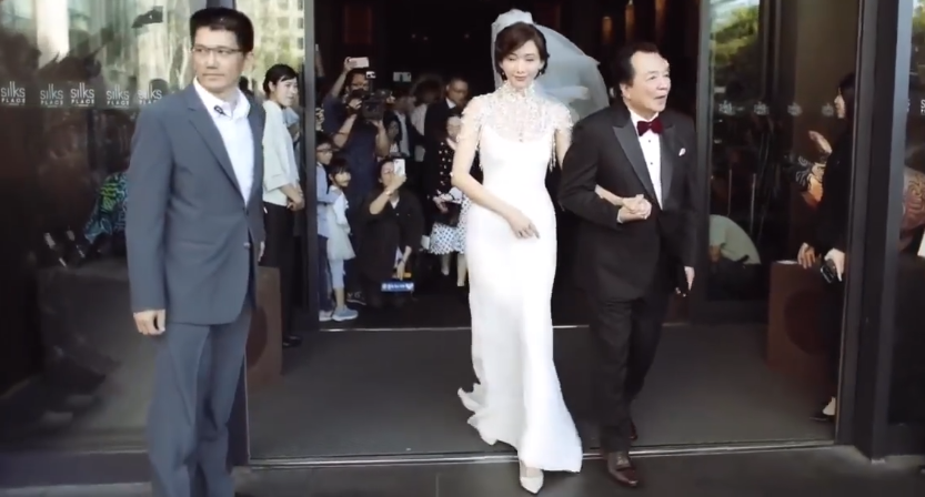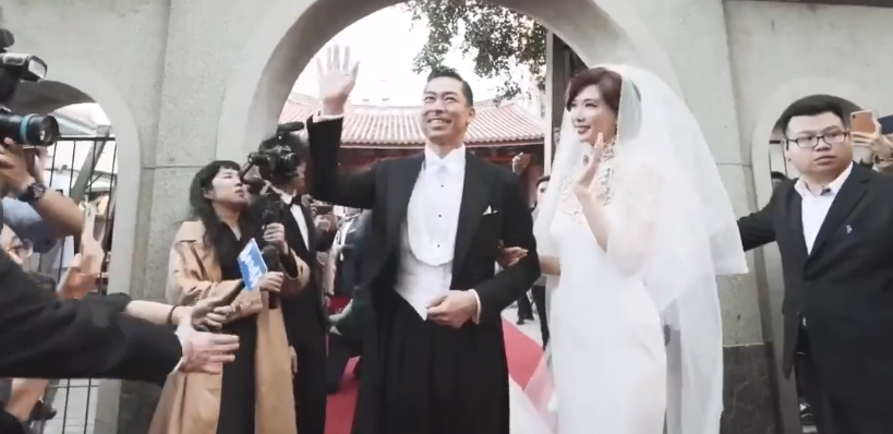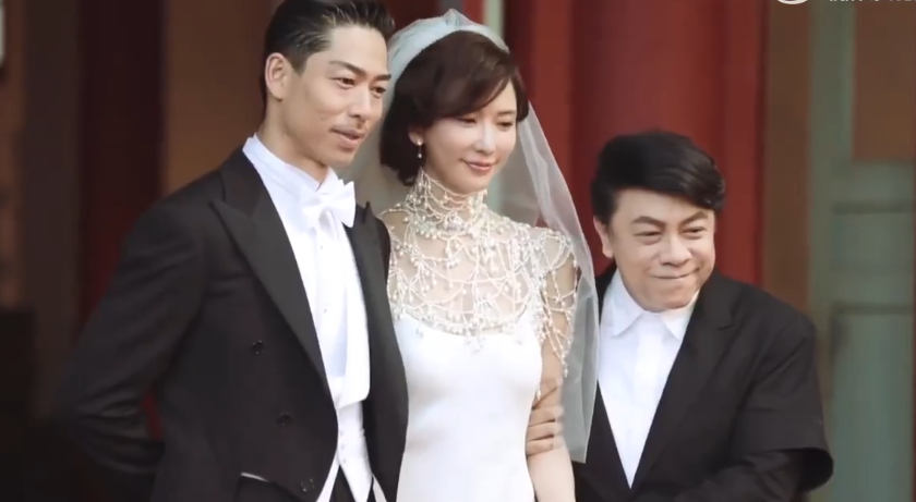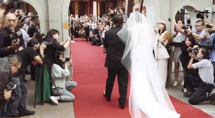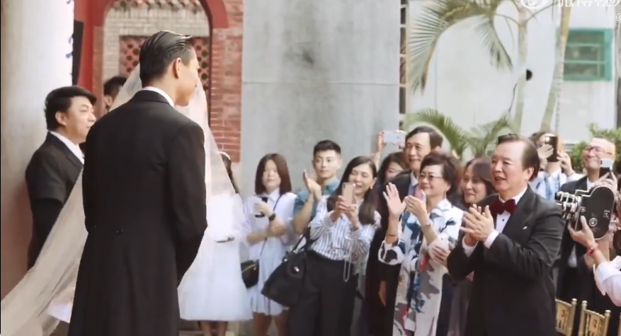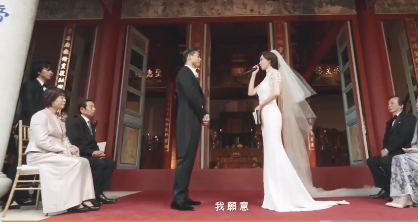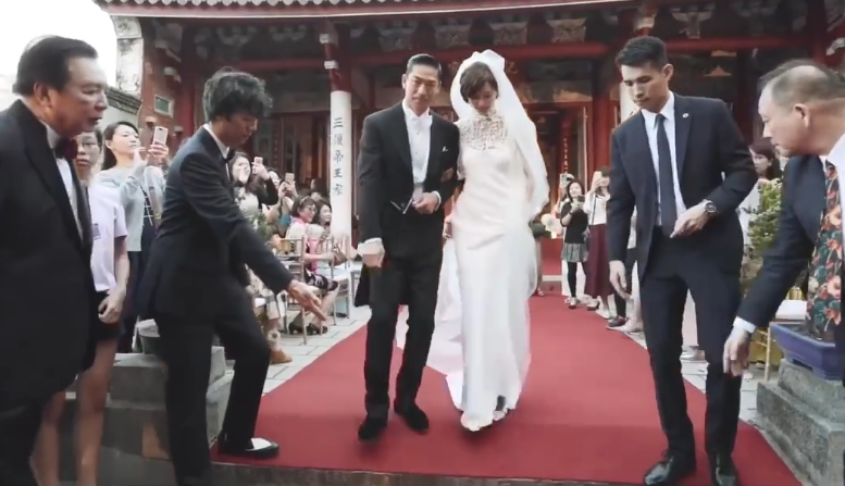 黑泽良平挽着林志玲,两人在众多亲友的见证下,走到祖祠的正堂门口,按照习俗,两人要在这里完成婚礼最重要的部分,向长辈敬茶、对彼此许下誓词,并为对方戴上象征永恒的戒指。