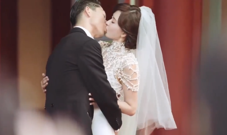 林志玲首次晒出结婚录影,两人的结婚誓词也曝光,拥吻的场面十分浪漫