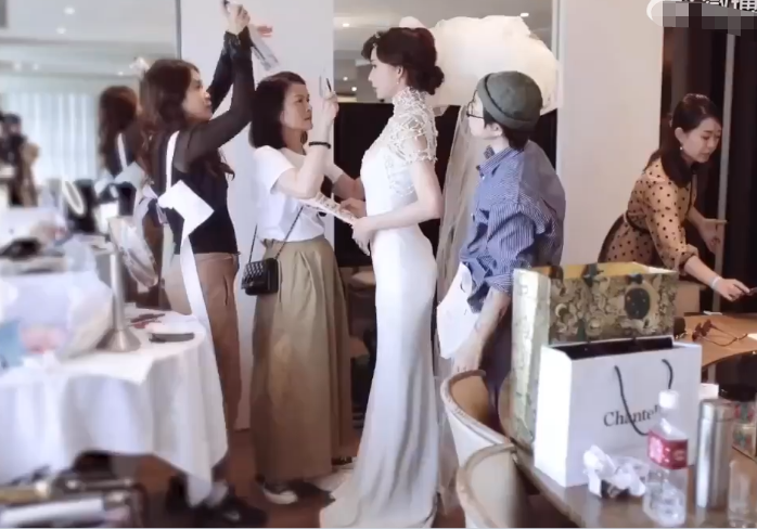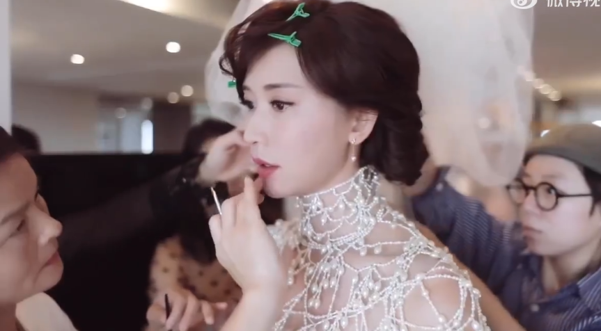 视频的一开始,林志玲在酒店穿上了雪白的婚纱,像公主一样十分漂亮,马上就要出嫁,能看出来十分激动,五六个化妆师为林志玲补妆。
