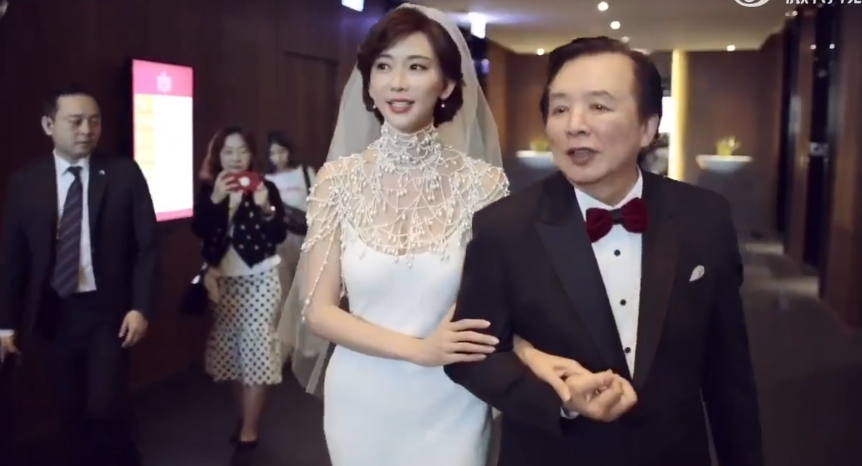 随后,林志玲和爸爸手挽手一起前往婚礼现场,志玲爸爸也是身穿西服,看起来很有气质,两人走出酒店大门,很多记者早就把门口围的水泄不通了。林志玲和各位前来祝福的粉丝、记者挥手告别,上了一辆白色轿车。