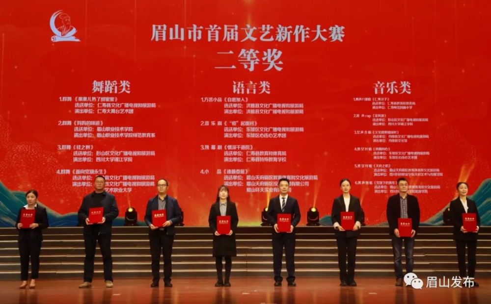 ▲眉山市首届文艺新作大赛获奖代表上台领奖