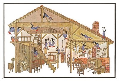安野光雅在《思考的孩子》中讲述说,小时候他曾和弟弟说:“告诉你一个秘密,千万不要说出去喔。我们家有间地下室,里面有好多金银财宝、衣服和玩具。入口就在米柜里,只要把米拨开,挖呀挖到最深处,就会看到地下室了。”当时弟弟的表情超级认真。“而我说着说着,连自己都觉得真有那么一回事。后来,我问弟弟还记不记得这件往事,他说,那是他心灵最快乐的一段时光。”