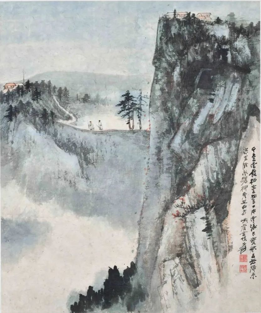 诗书画三位一体是中国传统文人的身份识别符码,诗书画三绝也就成为评定文人画的标准。陆俨少以其丰厚的学识、修养和造诣,集诗、书、画三绝于一身,成为现代唯一被美国纳尔逊博物馆定位的中国最后一个文人画大家。1975年至1985年十多年间,陆俨少的艺术创作达到了巅峰,此图作于1979年,时年71岁,是典型的“陆家山水”。