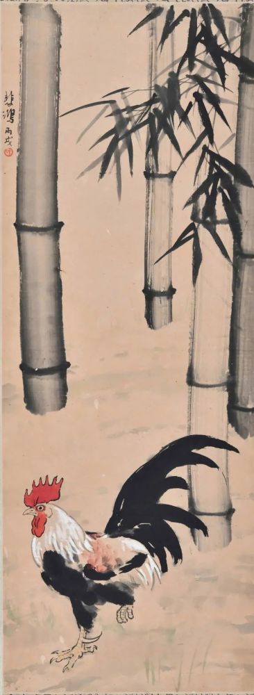 题签:徐悲鸿竹鸡。钤印:吕斯百
