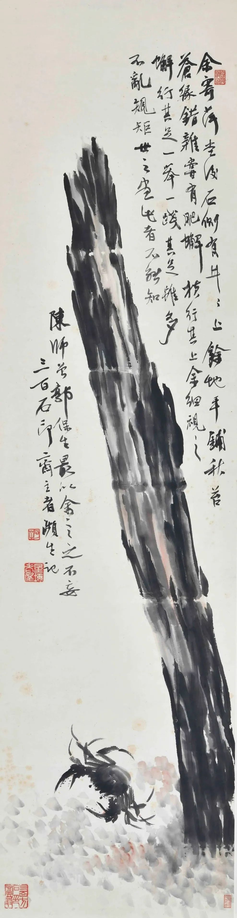 题识:余寄萍堂后石侧有井,井上余地平铺秋苔。苍绿错杂,尝有肥蟹横行其上。余细观之,蟹行其足一举一践,其足虽多,不乱规矩,世之画此者不能知。陈师曾、郭保生最以余言之不妄。三百石印斋主者濒生记。
