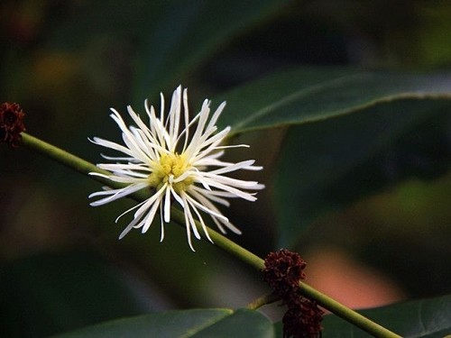四药门花是金缕梅科,该种是中国稀有种,分布于中国广东沿海及广西龙州。maigoo小编了解到,四药门花截止到1957年6月才于广西龙州再次发现,植株极为稀少,现已被加载《中国保护植物红皮书》及《广东省珍稀濒危植物图谱》。四药门花属常绿灌木或小乔木,生于富含腐殖质的肥沃赤红壤土,是热带与亚热带森林下的小树,有一定耐阴力。