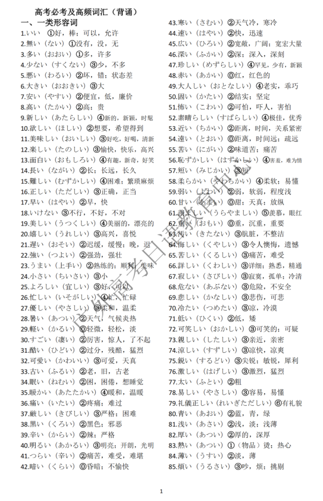 手机访问:wap.265xx.com必考考点|高考日语语法考点一网通之形容词篇(附高频词汇表)