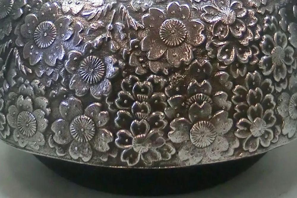砂铁铁壶 平南部形樱花纹 及川光正 南部铁器