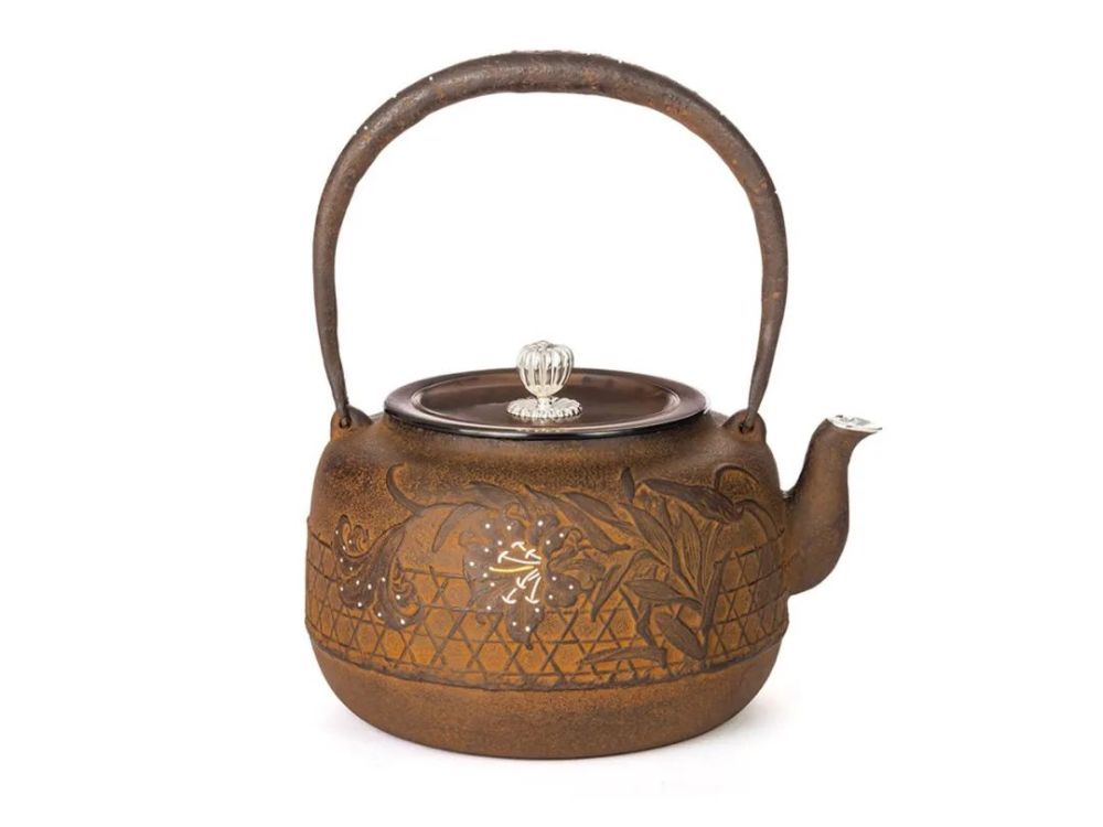 铁壶 花笼纹 花象嵌 佐藤清光 山形铸物