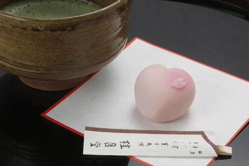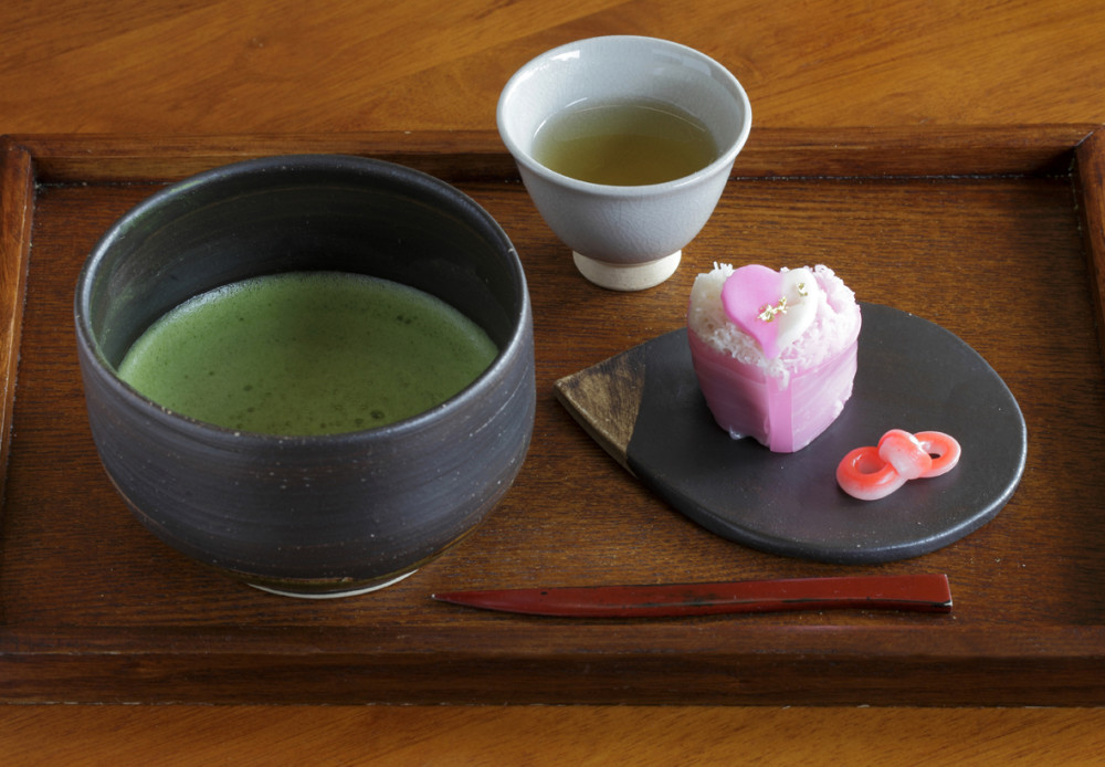 和菓子外表可爱精致、甜度适中,配上微苦的抹茶细细品尝吧。