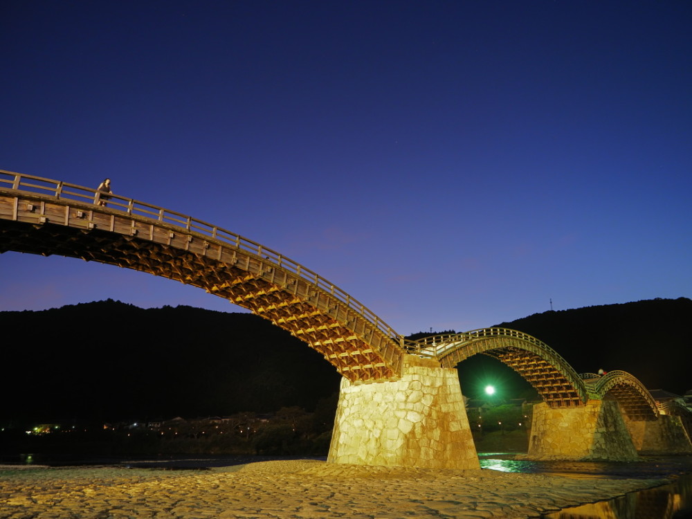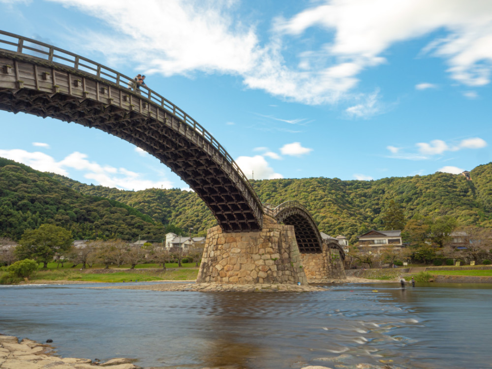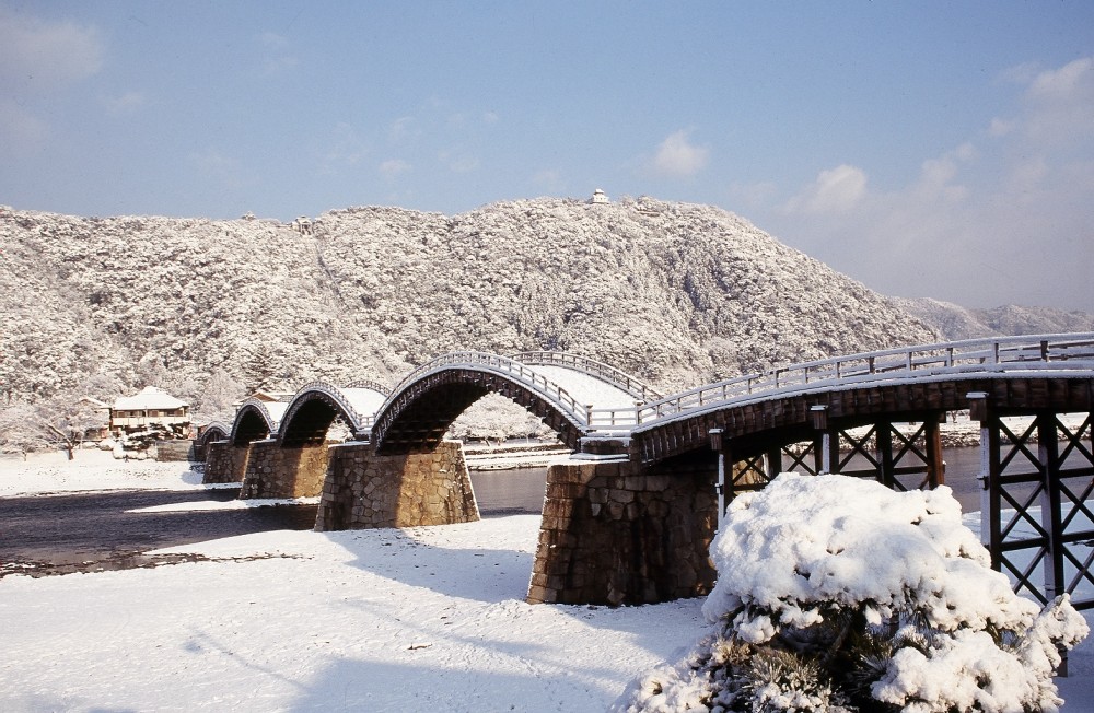 锦带桥是日本代表性的木造桥。构造精巧、独特。