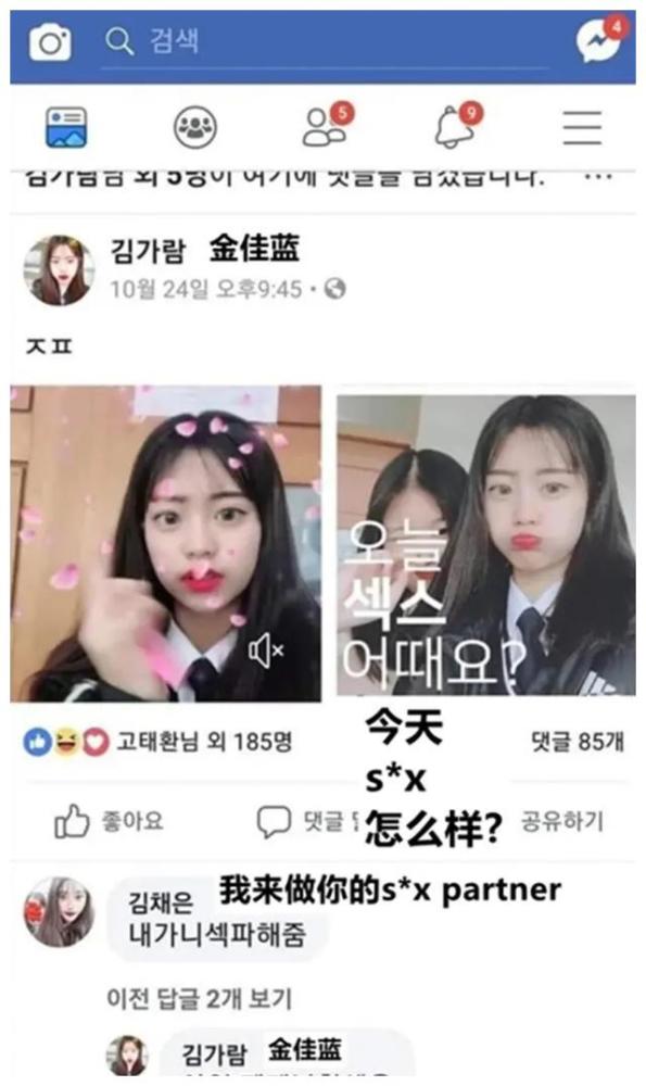 这里小编说一个让韩流网友直接破防的插曲,那就是金佳兰的同学曝光了她在学校的一些照片和聊天记录,照片是金佳兰在画有生理方面内容的黑板面前合影,甚至韩媒在报道这一点的时候还要给黑板上的画打码,如果说这是小孩子不懂事的话,那她那些和黑板内容一样的聊天记录就让无法再为她洗白,完全就是小太妹的形象。