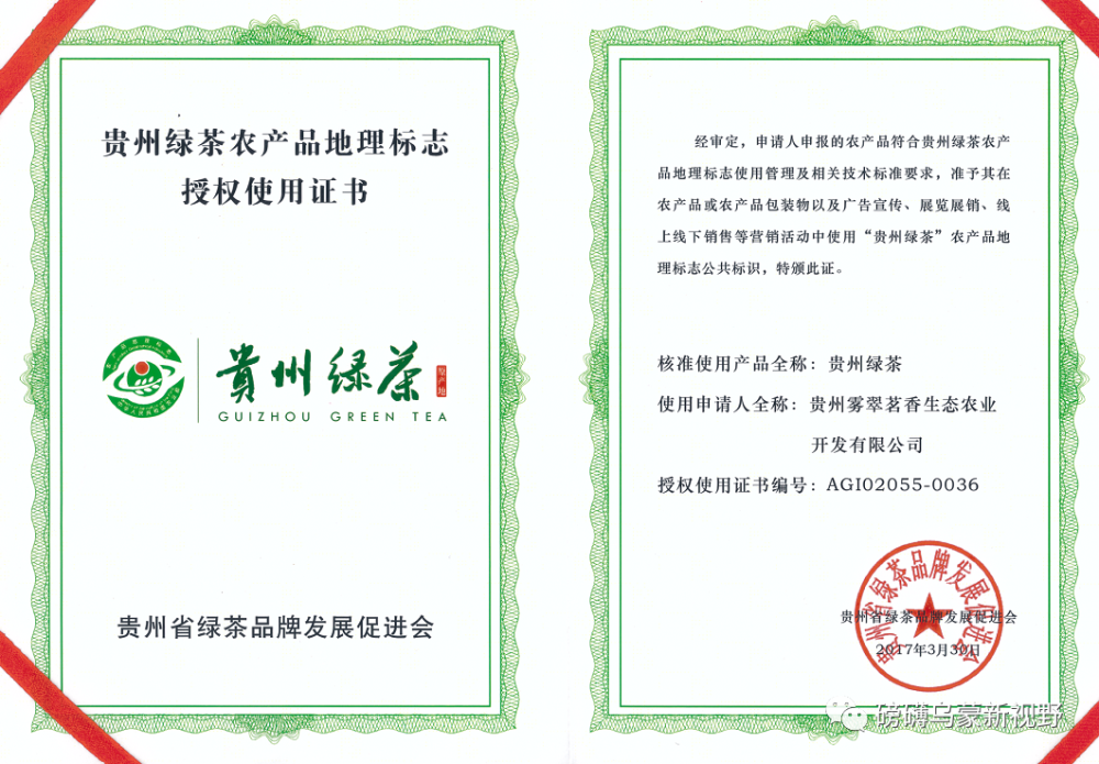 这些年来,贵州雾翠茗香生态农业开发有限公司获得了若干茶叶种植、生产、加工和销售等方面的诸多荣誉。