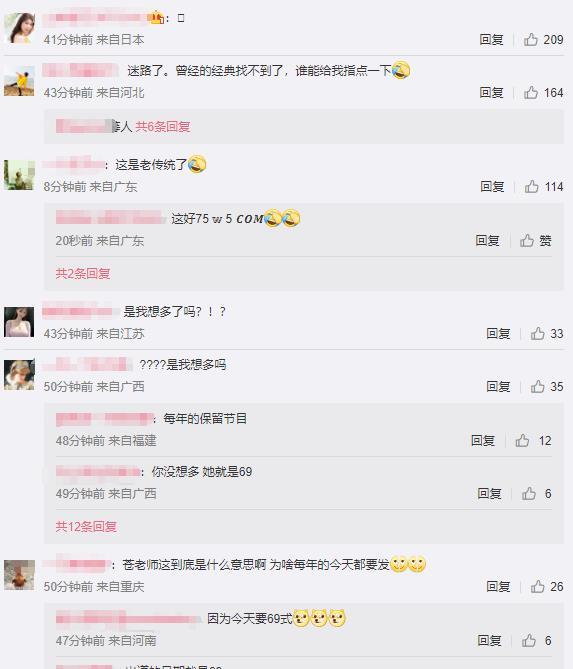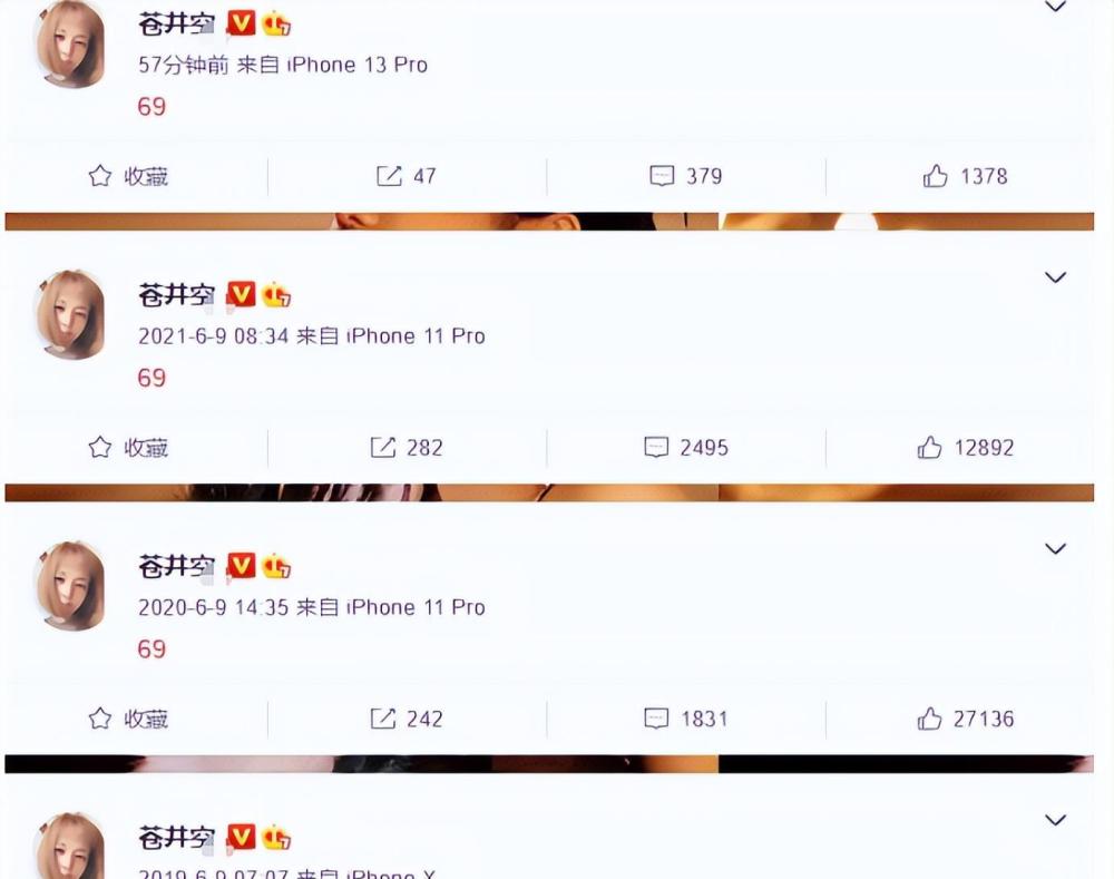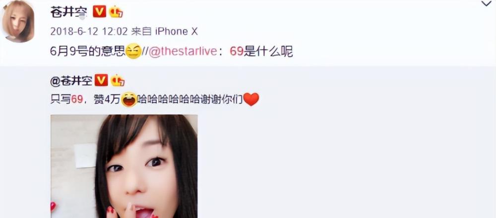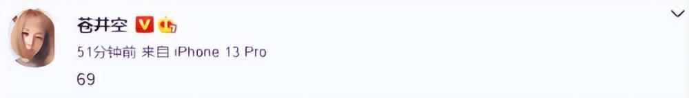 日前(6月9日),翻看苍井姐姐的社交平台账号,她一如既往地发出了两个数字“69”。